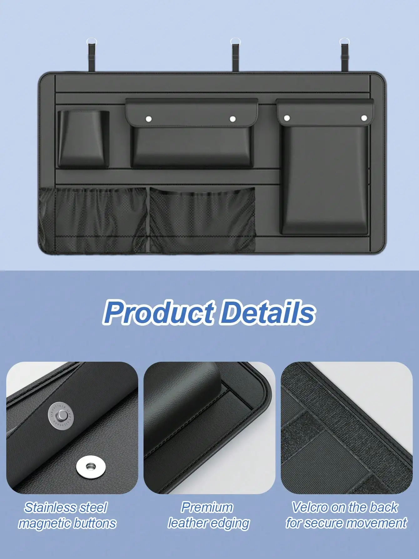 Waterproof Car Trunk Organizer – Large-Capacity Hanging Storage Bag with Multiple Pockets, Durable PU Leather Design, Easy-Wipe Surface, Multi-Purpose Car Storage Bag, Outdoor Glove Box, Suitable for SUVs and Sedans